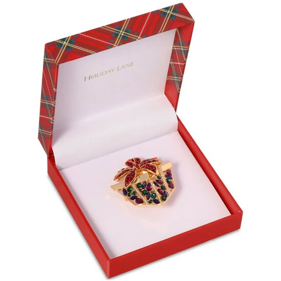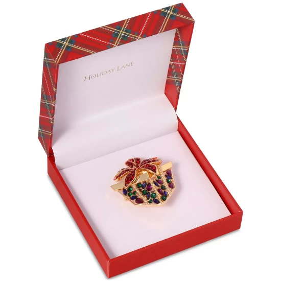 Already packaged in a box for simple gifting, this pretty wrapped gift pin boasts an array of colors and stone cuts. Charter Club.