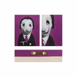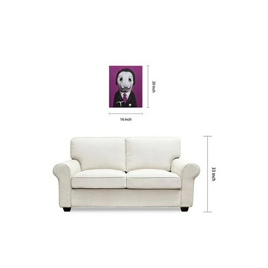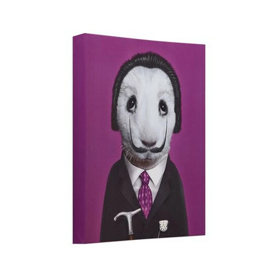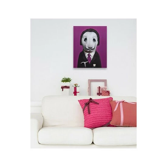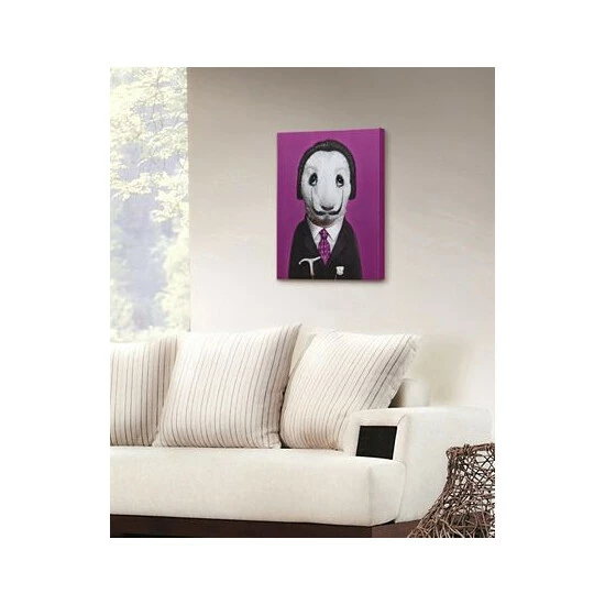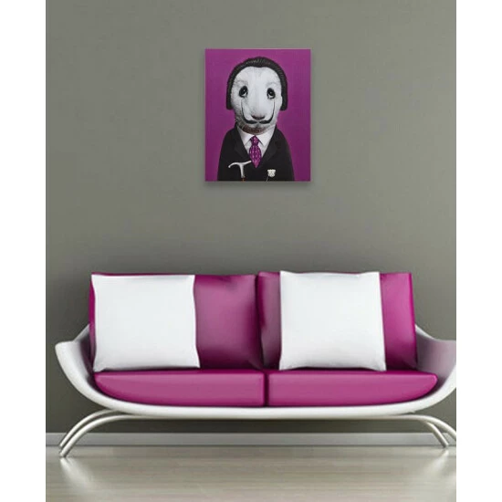 This piece will leave you scratching your head as you try to figure out the celebrity impersonation. The purple tie and background are a wonderful matching touch and will look rich in your home.