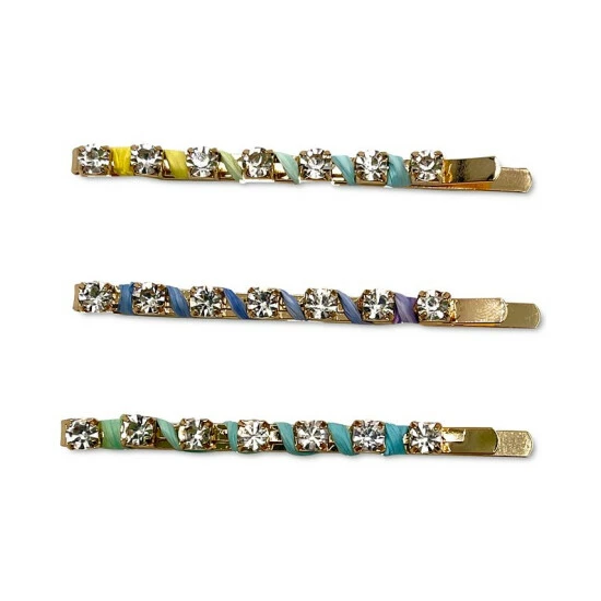 Colored raffia wraps between sparkling crystals in this set of three sweet bobby pins by INC International Conceptsยฎ.