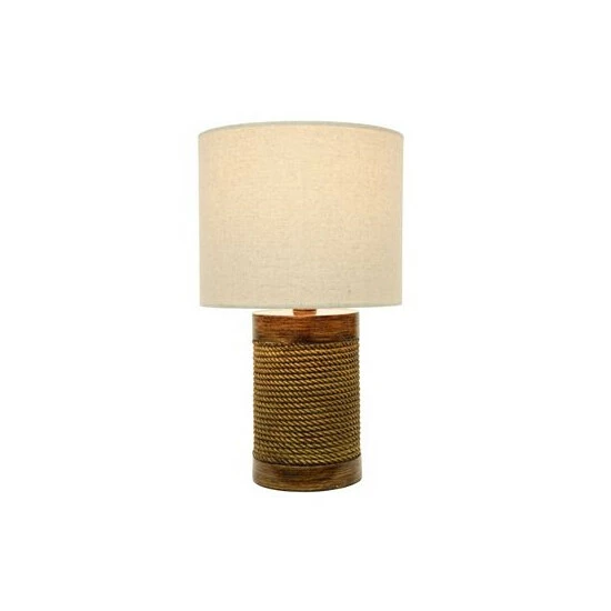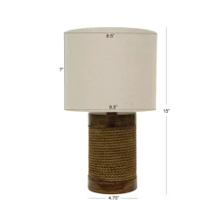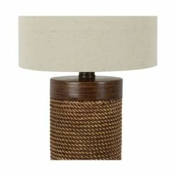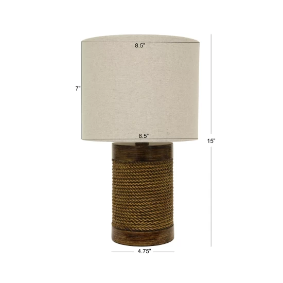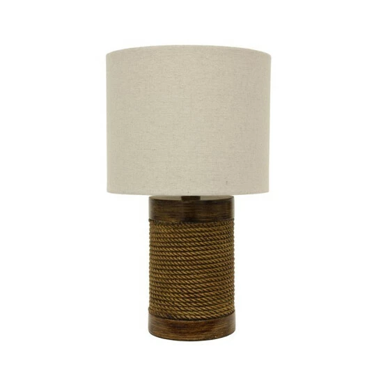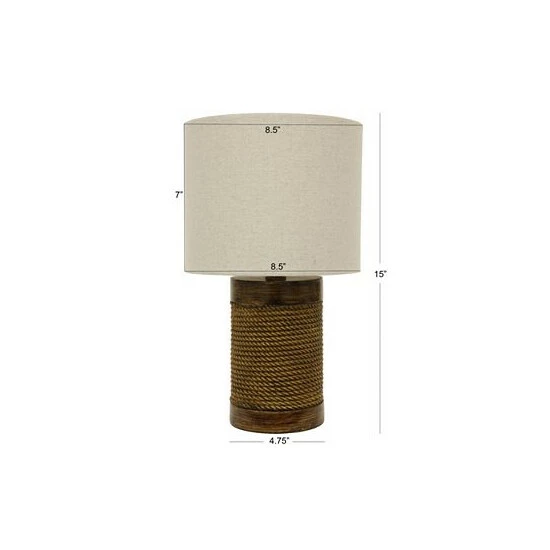 Bring a hint of coastal charm to your home with this handsome rope wrapped table lamp. The poly resin base is finished in a natural rope and wood look, adding texture to your side table. A natural linen shade adds a refreshingly modern touch.