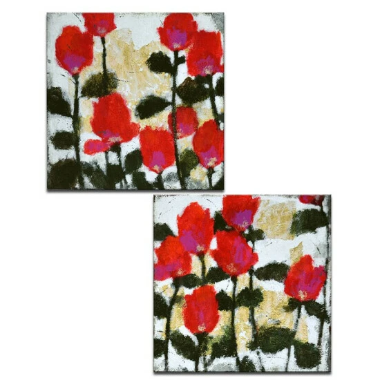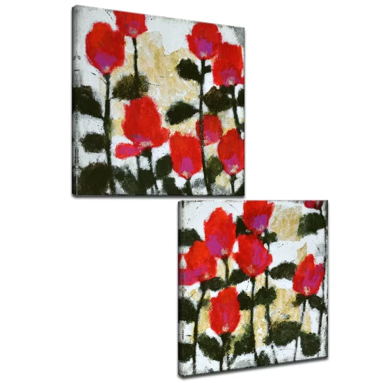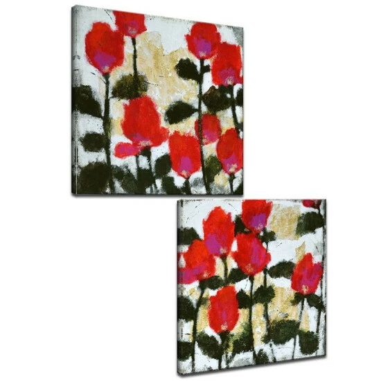 “Entice your floral love with ‘Meadow’. This diptych canvas piece feature a rose garden stretched across a 2 panel canvas. The 2 piece red roses bring love and a botanical flower touch to your walls.”