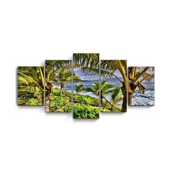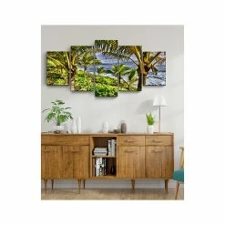 The overhang 5 piece canvas art set depicts lush island foliage on a luminous day, its tall palms gracefully elevated with their geometric leaves accentuating the scenery. Bring the beauty of nature to your decor with this stunning wall art.