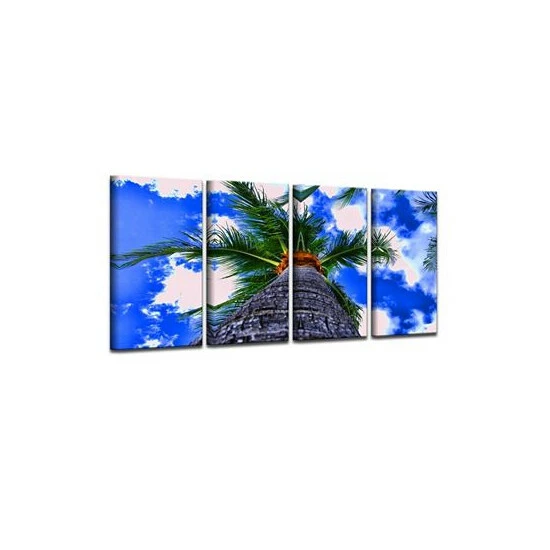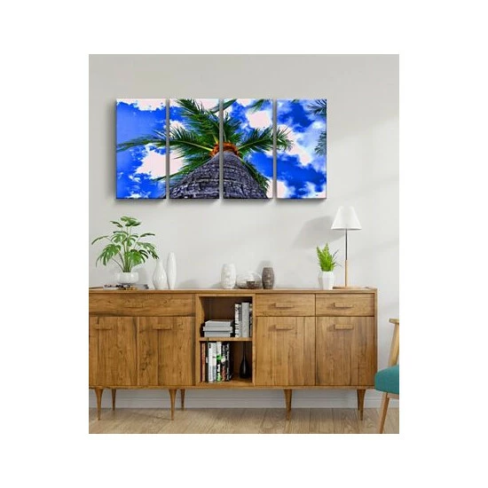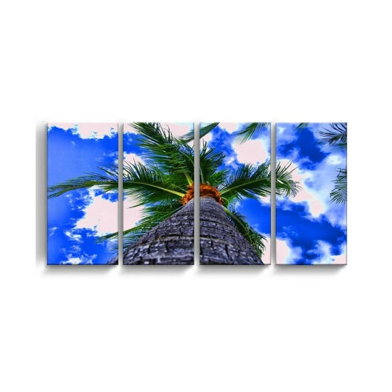 The palms III 4 piece canvas art set depicts a lone palm standing tall, the clouds glistening in the blue sky. Bring the beauty of nature to your decor with this stunning wall art.