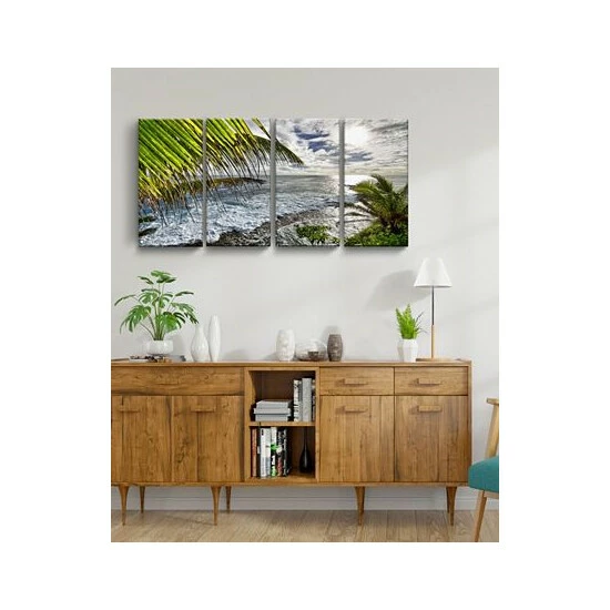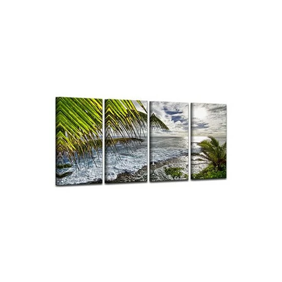 The palms view 4 piece canvas art set depicts a birds eye view of the luminous seas through the island palms. Bring the beauty of nature to your decor with this stunning wall art.