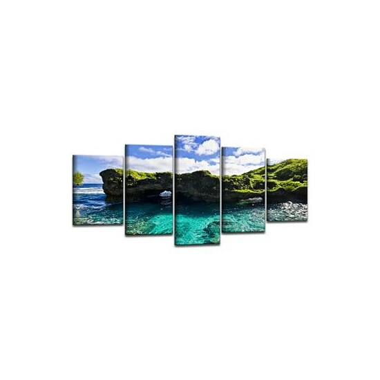 The seaglass II 5 piece canvas art set depicts a plethora of natural caves within a crystal clear lagoon, the breaks creating a yearning of escape to the open sea. Bring the beauty of nature to your decor with this stunning wall art.