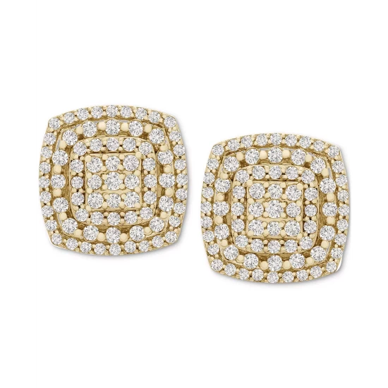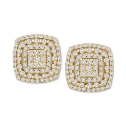 Opt for sophisticated sparkle with these square black enamel and diamond halo stud earrings from Wrappedโข. Also available in red enamel.