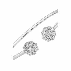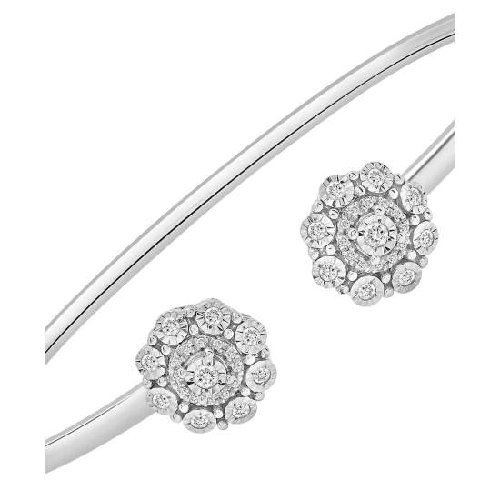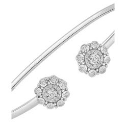 A pair of flower-motif diamond clusters grace the ends of this beautiful cuff bangle bracelet from Wrappedโข.