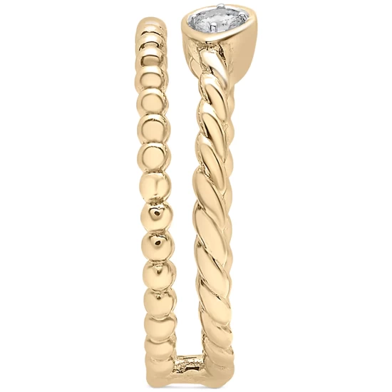 Beaded and rope framed bands are enhanced by shimmering diamonds in this edgy two row cuff ring from Wrappedโข/