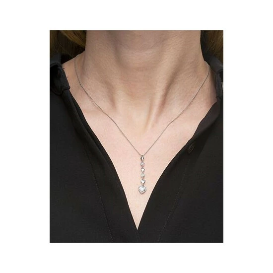 A stunning array of polished and diamond hearts hang from a lovely cable chain to create this sweet and romantic pendant necklace.