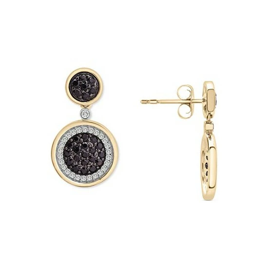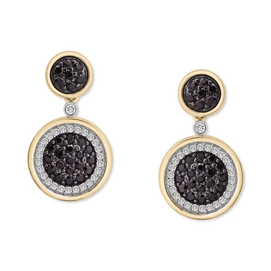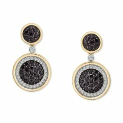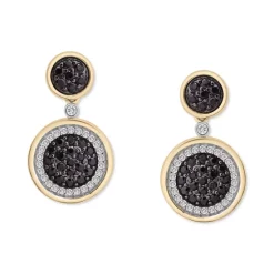 Deep and luxurious black diamond clusters are highlighted by circles of white diamonds in these glamorous circle drop earrings from Wrapped in Love™.