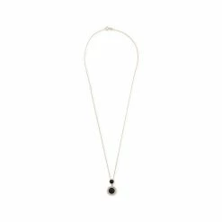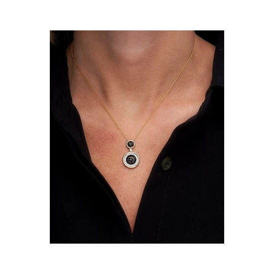 Black and white diamonds are beautifully contrasted on this daring double circle pendant necklace from Wrapped in Love™.