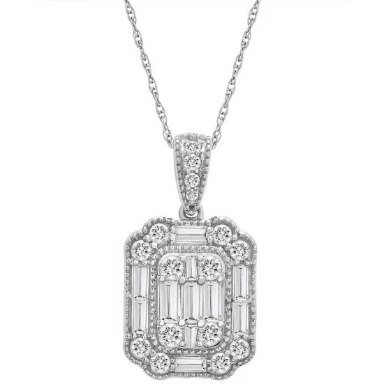 Wrapped in Love™ keeps you in glamorous style with this round and baguette diamond cluster pendant necklace.