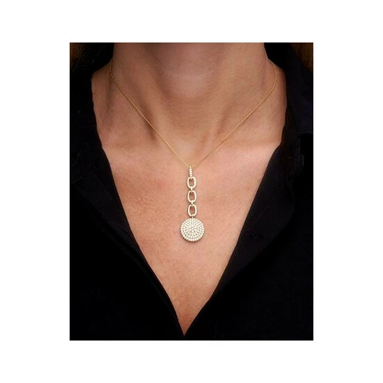 Get deco-inspired decadence with this long chain-link circular diamond cluster pendant necklace from Wrapped in Love™.