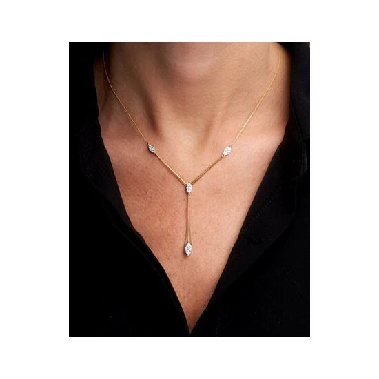 Wrapped in Love™ creates a look that is chic, modern and dramatic with this elongated multicluster diamond lariat necklace.
