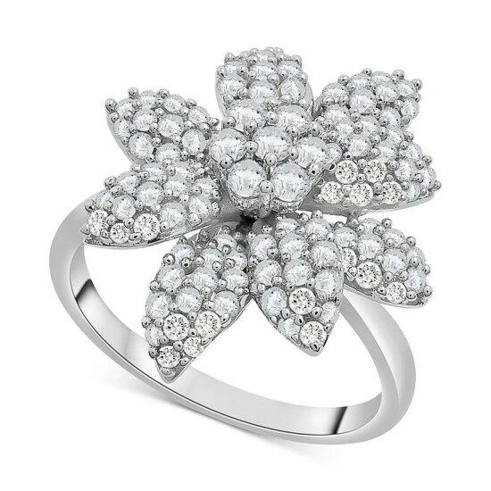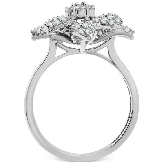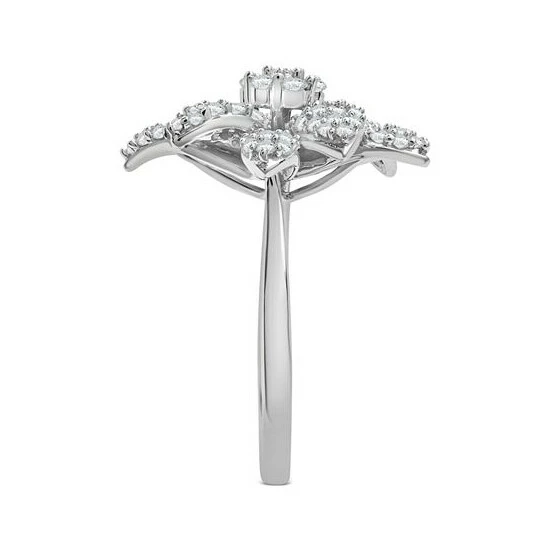 As extra as you! This glamorous flower ring from Wrapped in Love™ shimmers with diamond clusters in 14k white gold.