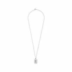 Wrapped in Love™ offers deco-inspired dazzle with this round and baguette diamond pendant necklace.