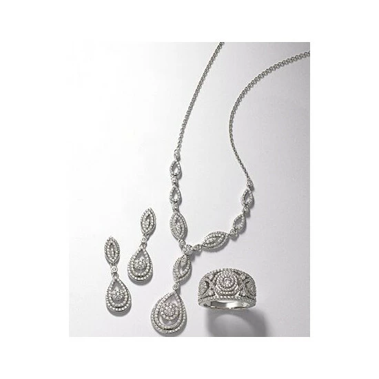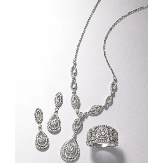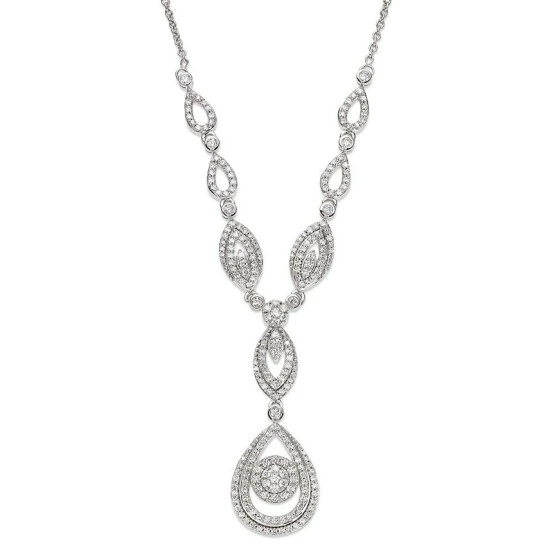Shine on. Dress up your look with this 14k white gold or 14k yellow gold necklace from Wrapped in Love™, featuring a drop pendant design bedecked with round and single-cut diamonds (1-1/2 ct. t.w.).