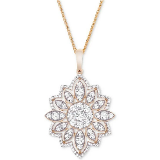Bloom into brilliance with the extravagant sparkle of Wrapped in Love’sโข round-shape diamond flower pendant necklace (1-1/2 ct. t.w.) exquisitely suspended on a fine box link chain.