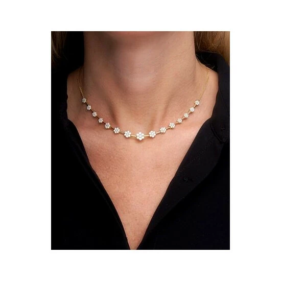 Wrapped in Loveโข indulges in garden-inspired glamour with this beautiful diamond flower cluster collar necklace, set in 14k gold.