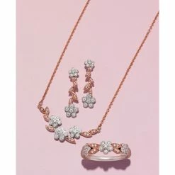 Indulge her whimsical sense of style with these pretty round-shape diamond flower drop earrings from Wrapped in Love™ with pretty white gold flowers on vines of rose gold.