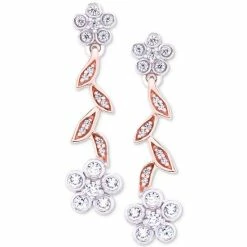 Indulge her whimsical sense of style with these pretty round-shape diamond flower drop earrings from Wrapped in Love™ with pretty white gold flowers on vines of rose gold.
