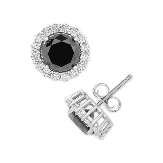 Stand out in the black-tie elegance of these stunning stud earrings. Designed by Wrapped by Loveโข, these earrings featured beautiful black diamonds embraced by halos of sparkling white diamonds in 14k white gold.