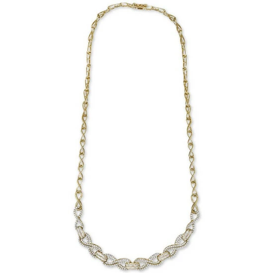 Beautiful diamond infinity links are connected with rings of gorgeous baguette diamonds in this stunning statement necklace from Wrapped in Love™.