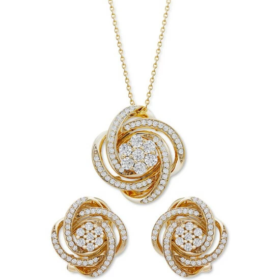 The classic love knot design is adorned with diamonds in this ultra-elegant jewelry collection from Wrapped in Loveβ’. Set in 14k gold, both necklace and earrings offer a timeless look she’ll treasure.