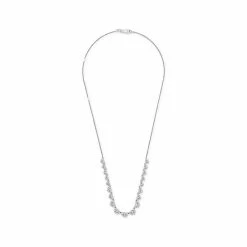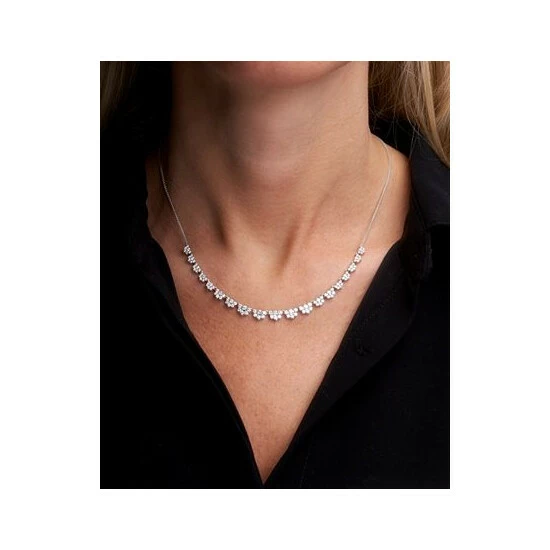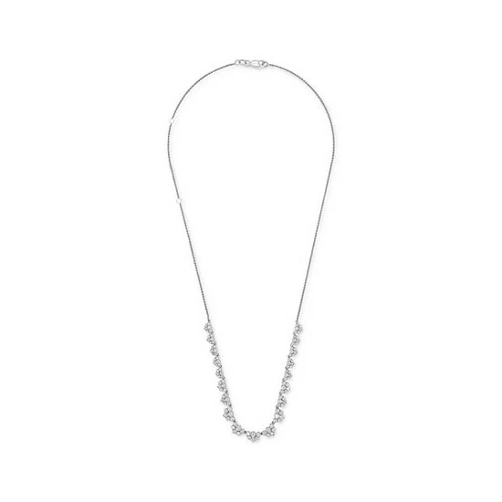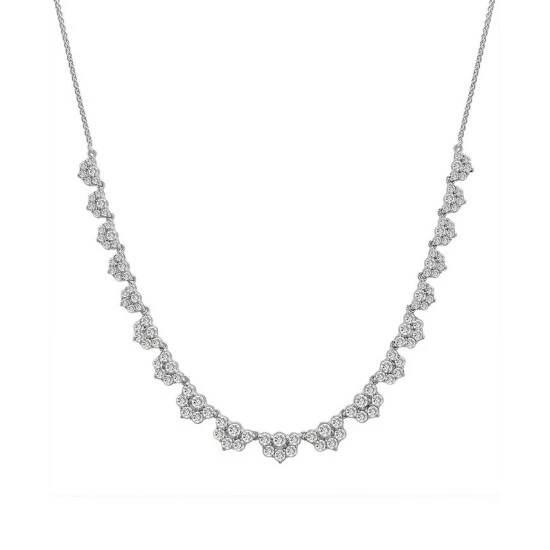 Demi-circular clusters of diamonds are gracefully arranged on an exquisite white gold necklace from Wrapped in Love™.