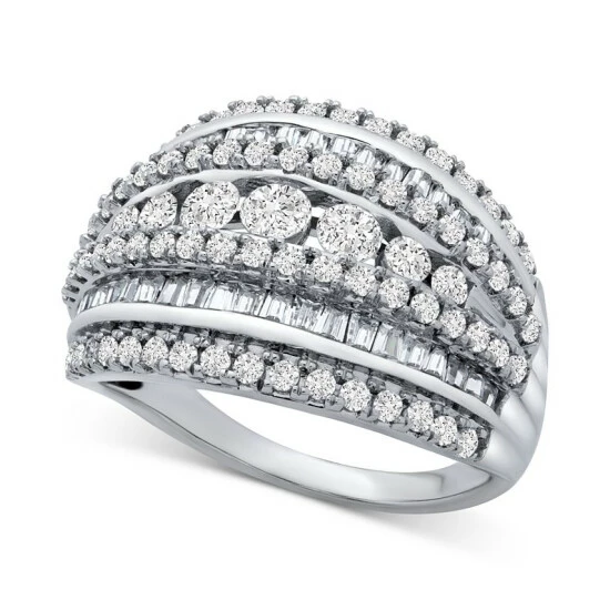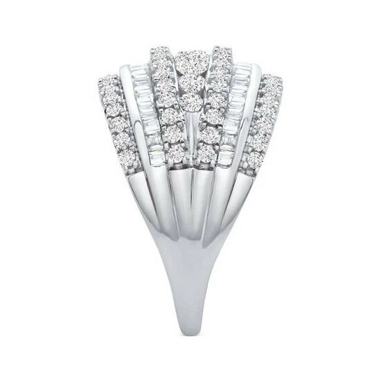 Introduce glamour into your jewelry box with this over-the-top round and baguette diamond statement ring.