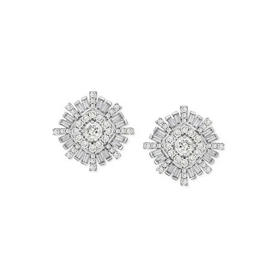 Show your love with a gift of sparkle with these round and baguette diamond cluster stud earrings, designed in white gold by Wrapped in Loveโข.