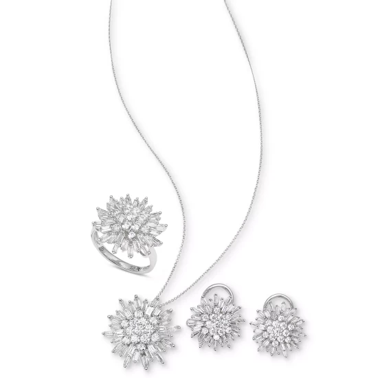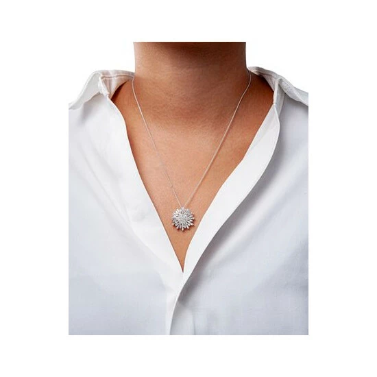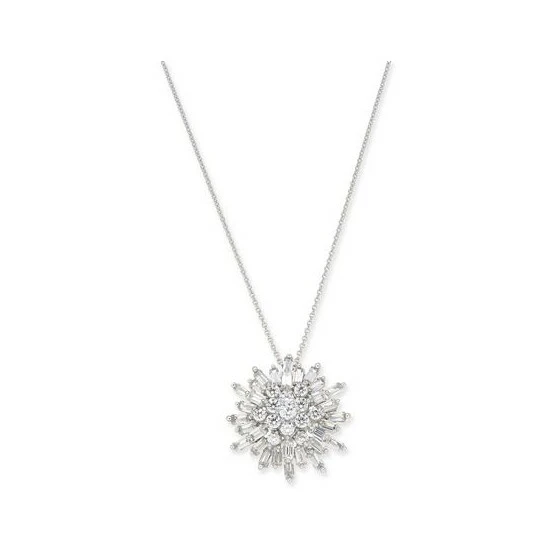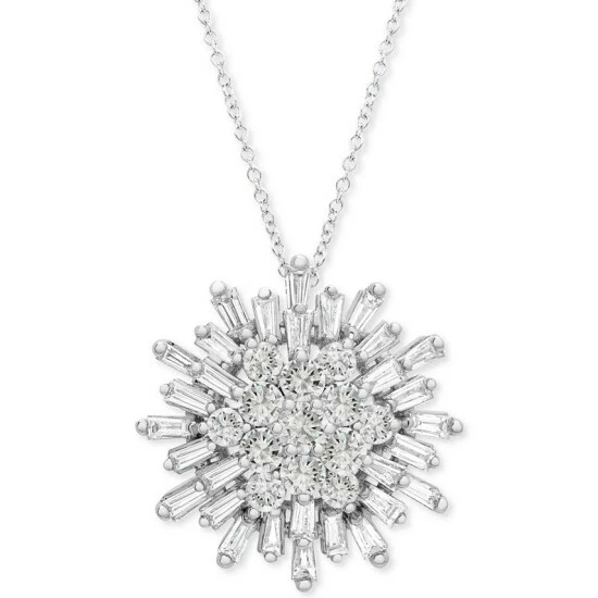 Shine brighter in this glamorous round-cut and baguette diamond starburst pendant necklace from Wrapped in Love™.