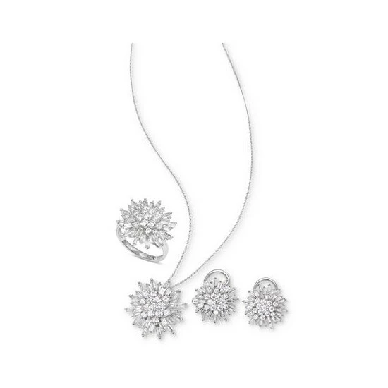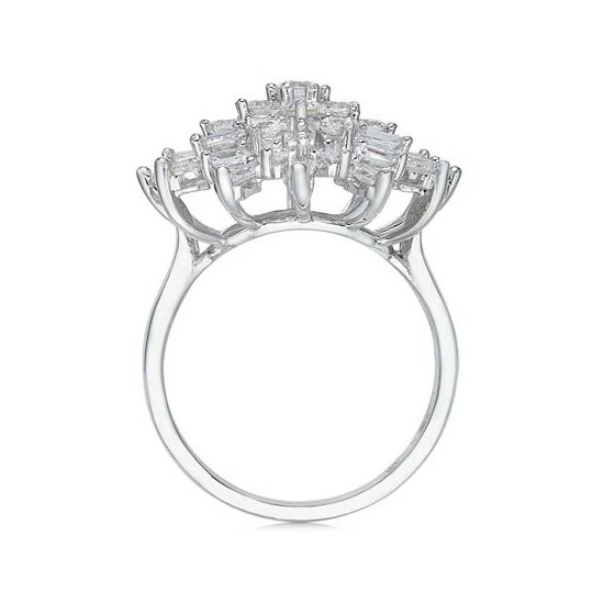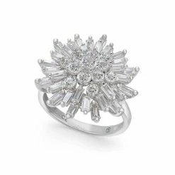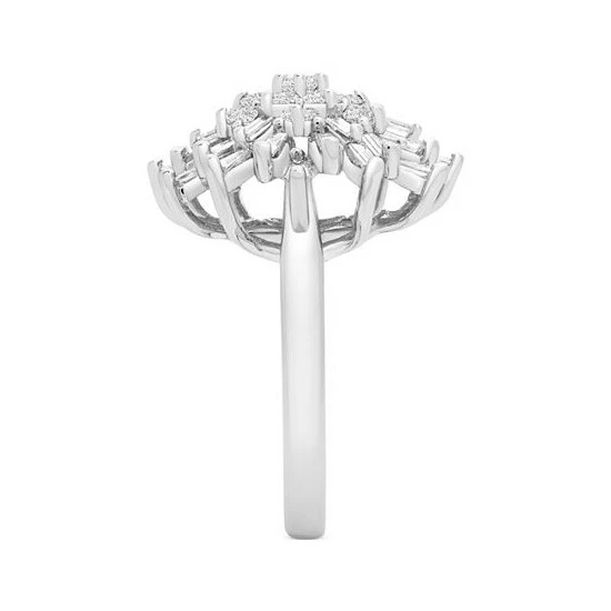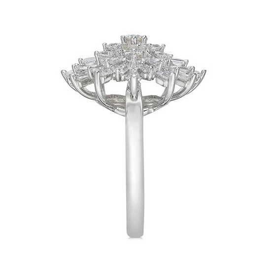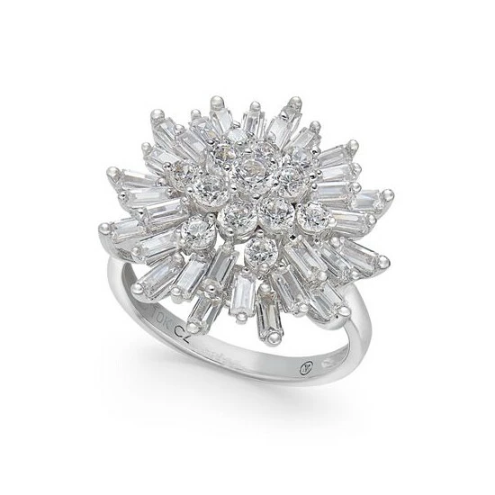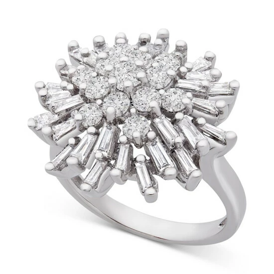 Dazzling round-cut and baguette diamonds form a spectacular starburst cluster in this stunning white gold cluster ring from Wrapped in Love™.