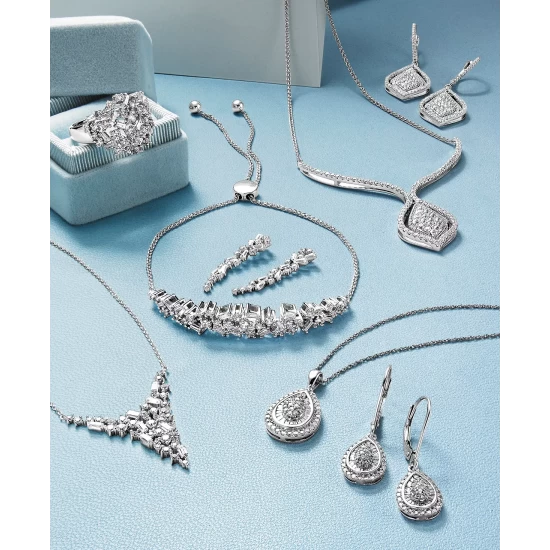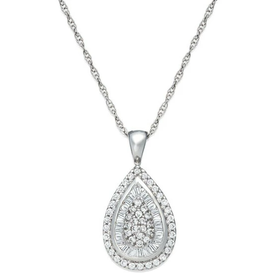 This spectacular Wrapped in Loveโข diamond necklace radiates elegance. Single-cut and baguette diamonds (1/2 ct. t.w.) sparkle plenty, set in gleaming 14k white ,yellow or rose gold. Approximate length:18 inches. Approximate drop: 8 inches.