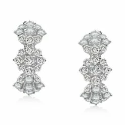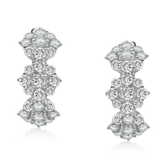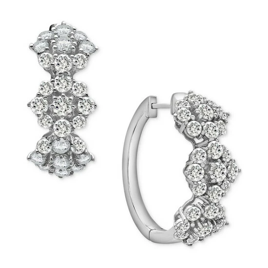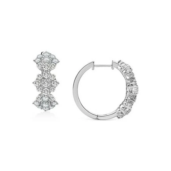 Whimsical sparkle radiates from these beautiful diamond triple flower cluster hoop earrings.